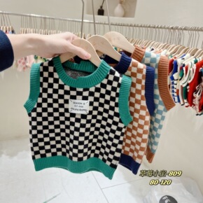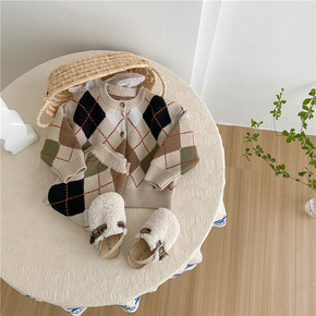 草莓小宝2022春季新款儿童毛衣男女童韩系棋盘格宝...