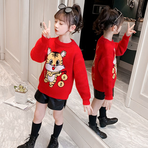 儿童毛衣秋冬新款女童水貂绒毛衣宝宝打底衫套头儿童百...