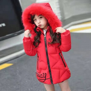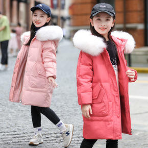 2021加大毛领加长款儿童羽绒服女童修身韩版男童秋...