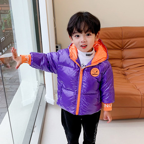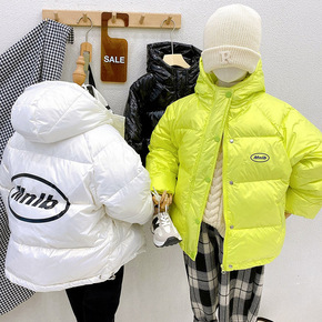 免洗Mnlb儿童亮面羽绒服厚款时尚字母印花白鸭绒男...