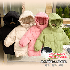 【清仓款不退换】儿童90白鸭绒中长款连帽羽绒服男女...
