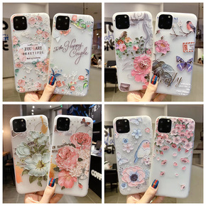 11浮雕花朵软壳适用苹果12手机壳女磨砂Note2...