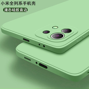 适用小米11手机壳液态硅胶10pro防摔直边红米n...