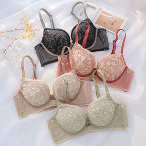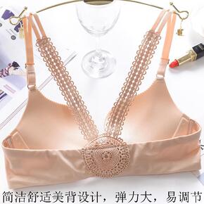 内衣女超仙性感美背无钢圈小胸聚拢加厚调整型蕾丝文胸...