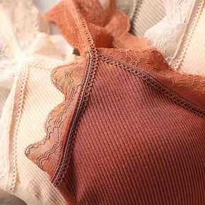 撞色蕾丝少女内衣小胸聚拢上托收副乳文胸套装无钢圈性...