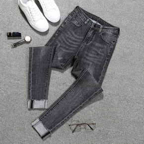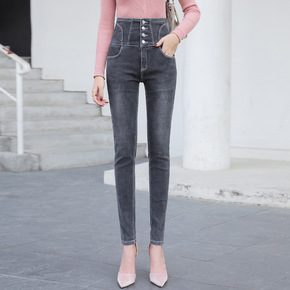 黑色牛仔裤女高腰紧身2019春秋季修身显瘦烟灰色九...