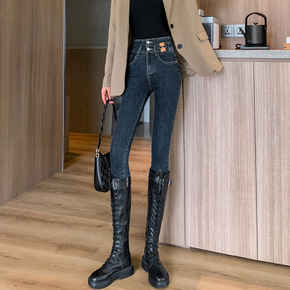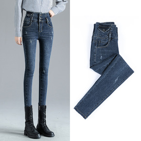 代发高腰紧身牛仔裤女小脚长裤高弹力显瘦2021秋冬...