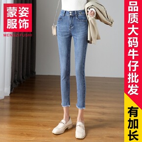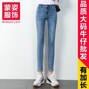 春秋款大码女裤胖mm小脚牛仔裤韩版铅笔裤高个子加长...