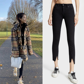 高腰双排扣小脚牛仔裤女秋季新款高弹力修身显瘦chi...