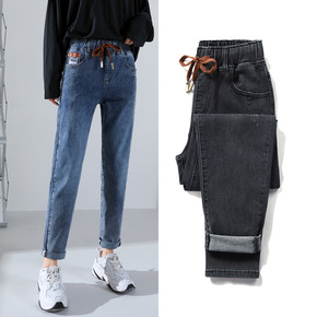 松紧腰弹力牛仔裤女春夏韩版2021新款萝卜裤小脚裤...