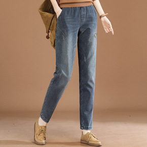 大码女装胖mm春装弹力显瘦小脚牛仔裤200斤胖妹妹...