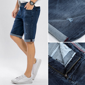 短裤男2022夏季新款修身牛仔五分裤休闲直筒中腰水...