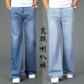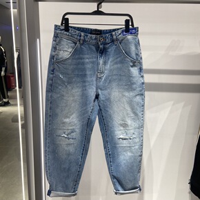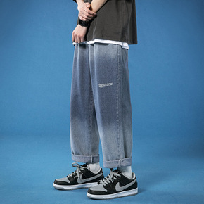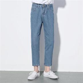 夏季宽松九分裤男牛仔裤青少年学生哈伦裤浅蓝色萝卜裤...