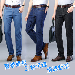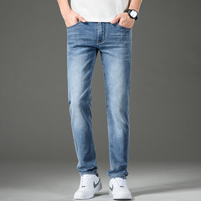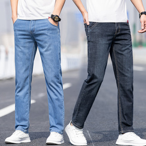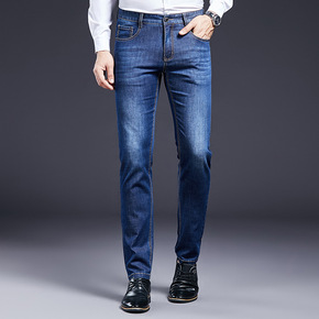 春季薄款商务休闲牛仔裤男中腰弹力修身直筒宽松韩版时...
