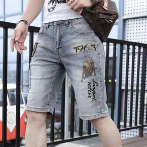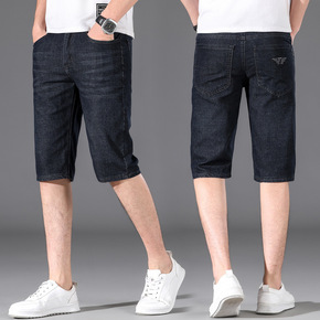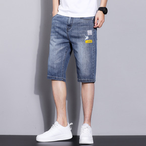 牛仔裤男夏季薄款宽松直筒弹力修身休闲短裤子2022...