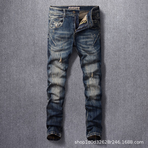 跨境男装2021欧美高街风新款 国潮牌破洞牛仔裤男...