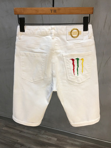 白色短裤男夏季 潮流弹力马裤休闲5分牛仔裤高端潮牌...