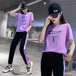 潮牌时尚休闲运动套装女夏2020新款韩版宽松百搭束...