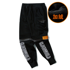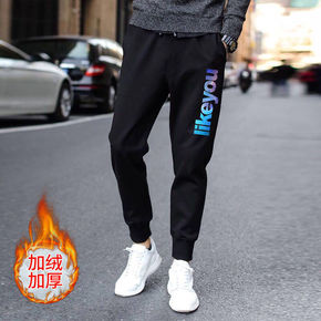 L-8XL运动裤子男冬季潮流休闲长裤青少年棉裤加肥...