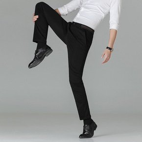 冬季加绒加厚款男士休闲裤免烫百搭西裤中青年韩版修身...