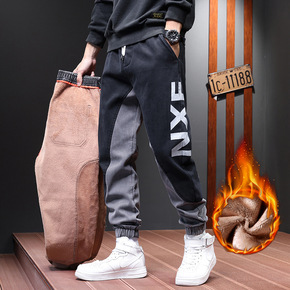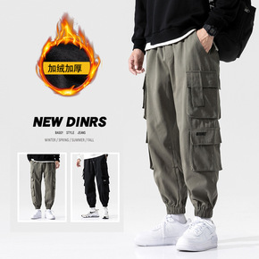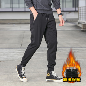 加绒加厚束脚裤工作裤男装2021冬季新款男士休闲裤...