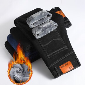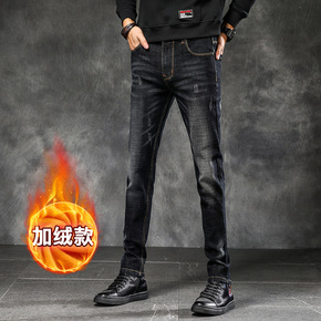 冬款男士牛仔长裤子男青年商务加绒加厚牛仔裤男保暖宽...