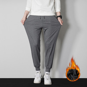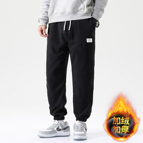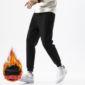 21冬季简约加绒加厚纯色束脚裤男士宽松休闲卫裤潮男...