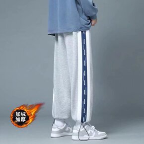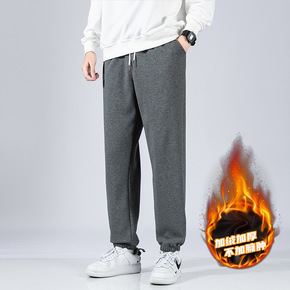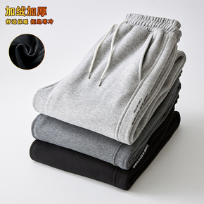 加绒加厚秋冬季运动裤男宽松束脚裤子百搭长裤休闲裤中...