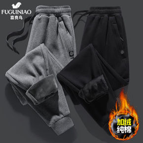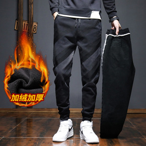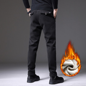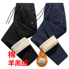 2021冬季新款男式休闲裤直筒长裤加绒加厚羊羔绒保...