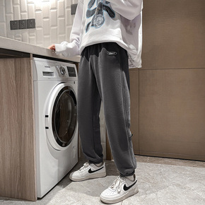 裤子男秋冬季加厚重工艺运动裤休闲百搭哈伦裤宽松灰色...
