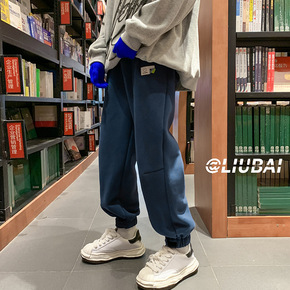 2021年冬季加绒加厚百搭宽松潮流阔腿休闲长裤纯色...