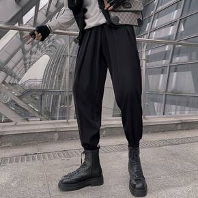 高级感垂坠魔术贴加绒加厚休闲西裤男韩版宽松哈伦裤潮...