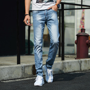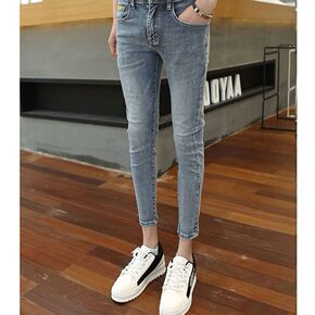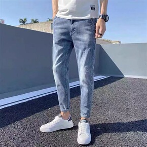 夏季新款九分牛仔裤男弹力修身小脚青少年男士韩版潮流...