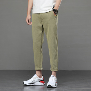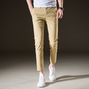 春夏季薄款男士休闲九分裤色简约男潮流修身小脚弹力九...