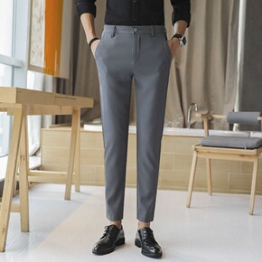 小西装9分裤子男休闲裤男韩版潮流男士西裤百搭小脚九...