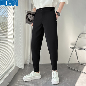 夏季薄款黑色休闲西裤男2022新款小脚九分裤韩版潮...