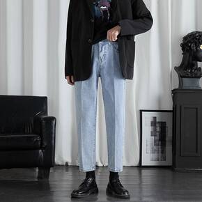 九分裤男士牛仔裤ins港风潮牌原宿风宽松休闲裤男生...