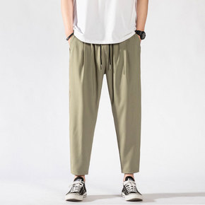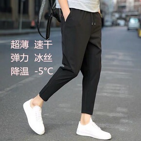 休闲九分裤男士夏季薄款冰丝垂感西裤宽松小脚速干直筒...
