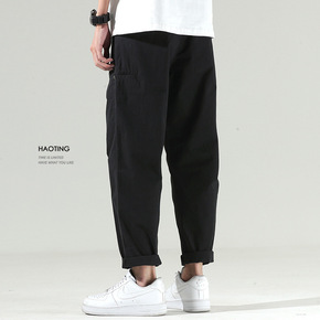 2020秋季新款大码九分裤男长裤小脚裤宽松胖子青少...