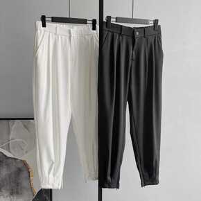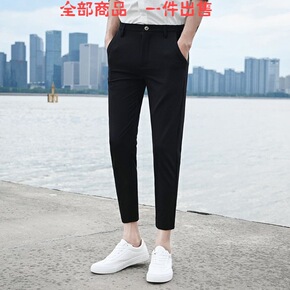 九分裤男修身西装裤小脚9分西裤夏季休闲白色裤子男韩...