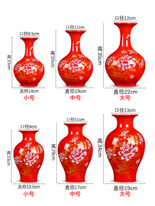 景德镇复古陶瓷器中国红小花瓶新中式家居饰品复古摆件...