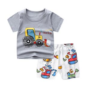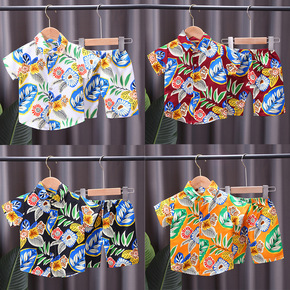 儿童印花衬衫两件套2021新款夏季男童短袖套装0-...