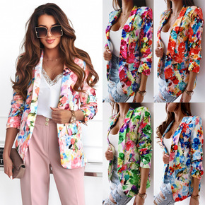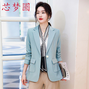 彩黛妃2022春季新款韩版修身长袖纯色休闲时尚小西...