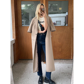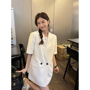 FABI 长款短袖西装外套女2022春季新款韩版西...