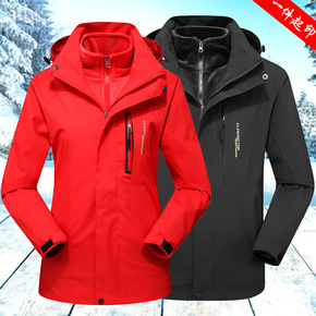 厂家批发三合一冲锋衣男可拆卸两件套加绒加厚冬工作服...