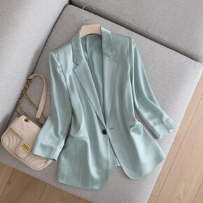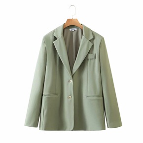 春秋长袖休闲一粒扣绿色小西装韩版气质通勤减龄女神范...