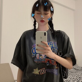 2021秋装新款韩版复古港味宽松ins潮下体失踪印...
