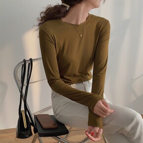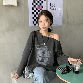 露肩T恤女2021秋季新款韩版宽松美式时尚显瘦复古...