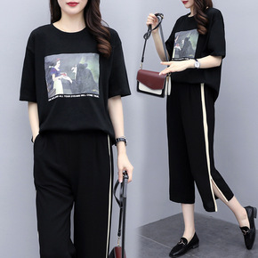 大码女装夏季休闲套装2021年新款胖妹妹时髦洋气显...