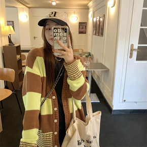 FRUITY明星权恩妃同款黄色小碎花薄款针织开衫女...